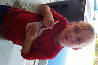 The garden that we planted last month is taking off really well this year. We already have several tomatoes and Serrano peppers growing…and one lonely cucumber. You really love watering it and looking at it. And hopefully now that the soil in there is looser with the sand I put in maybe the carrots will grow better his year and we can actually eat one.