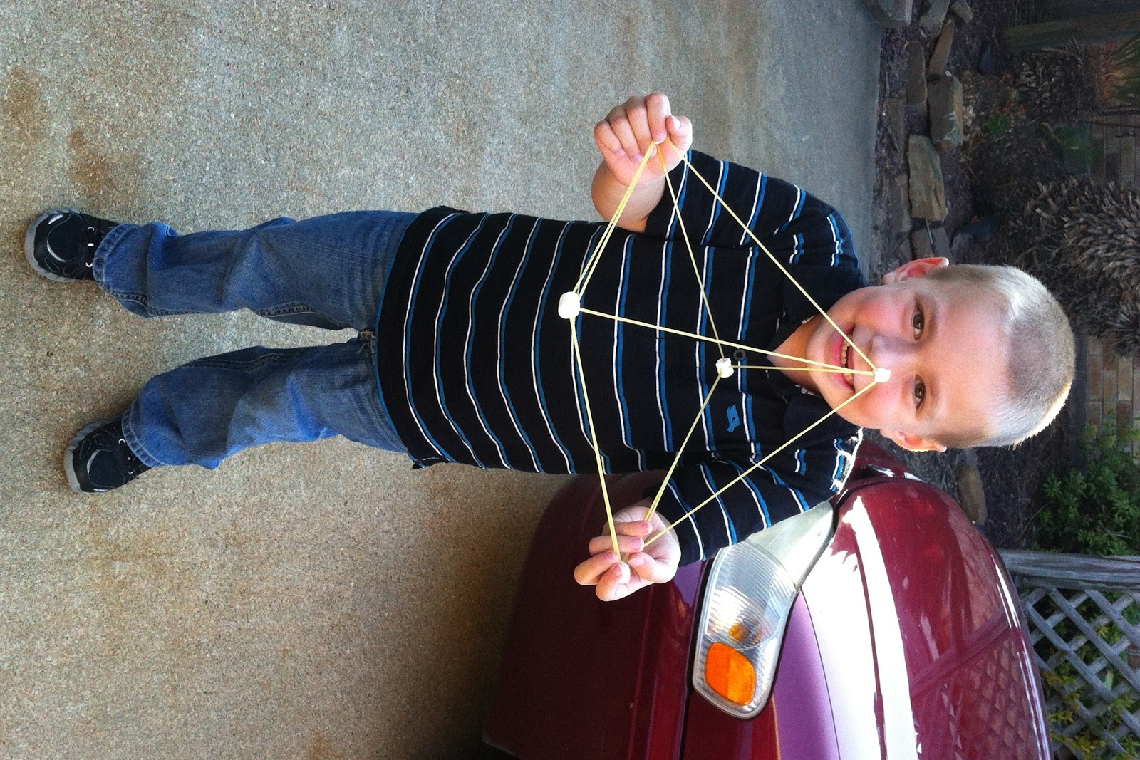 I’ve been building some large yard games based on board games lately. I finished battleship, and you are very interested in learning to play. So for the last couple of nights we’ve been playing the regular board game of battleship instead of watching TV. It’s pretty nice, and I’m trying to teach you some strategies…like once you get a hit, maybe finding the rest of that boat should be your priority instead of trying to keep finding other boats. We’re also establishing rules, such as the fact that there is no move where you “launch an airplane and it hits one hit on each of your opponent’s boats.”