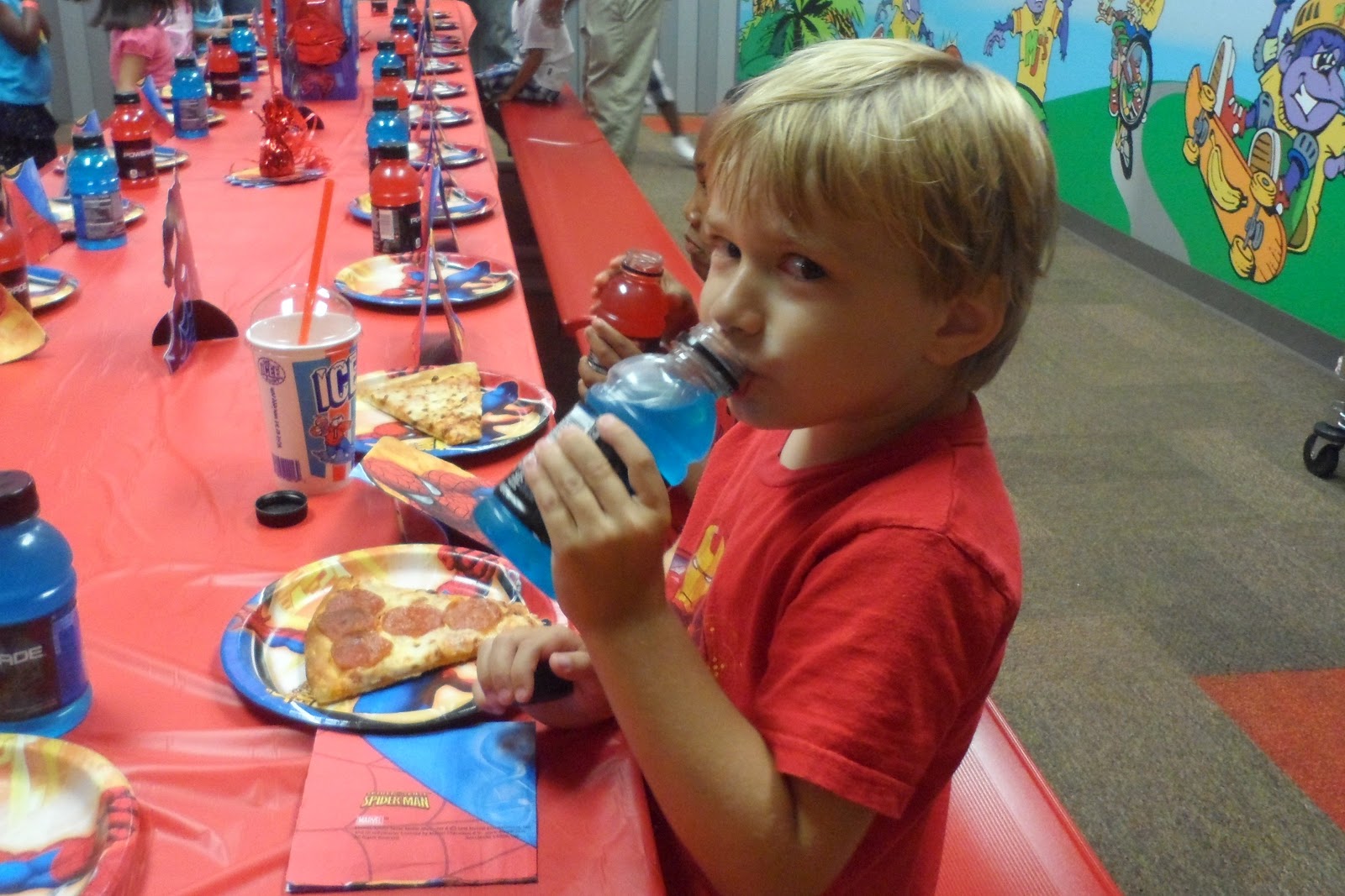 Right after I got sprayed off by the fire truck we went home, I showered and we immediately got back in the car to go to one of your friend’s birthday parties. After which we met Catherine and Jack for dinner.